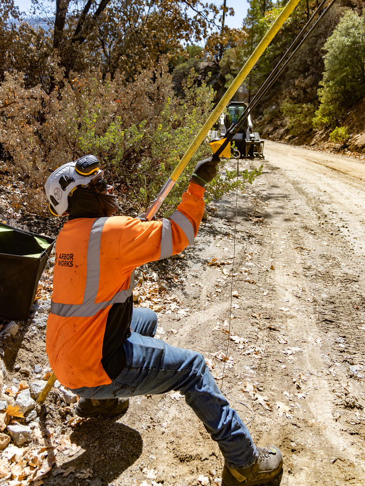 We then followed the Arbor Works crew to a second site where another hazard tree stood within strike potential to the only road connecting staging yards, helicopter pads, and crews heading in and out of the canyon.