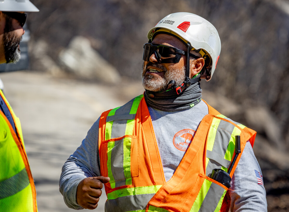 Supporting all of it is traffic control, essential to keeping the roads safe as crews and equipment move constantly up and down the mountain. Erik Valadez, a PG&E traffic control worker assigned to Arbor Works, summed it up simply: “It’s pretty cool to be part of all the lines of work PG&E does. We get to see it all and help keep everyone safe.”