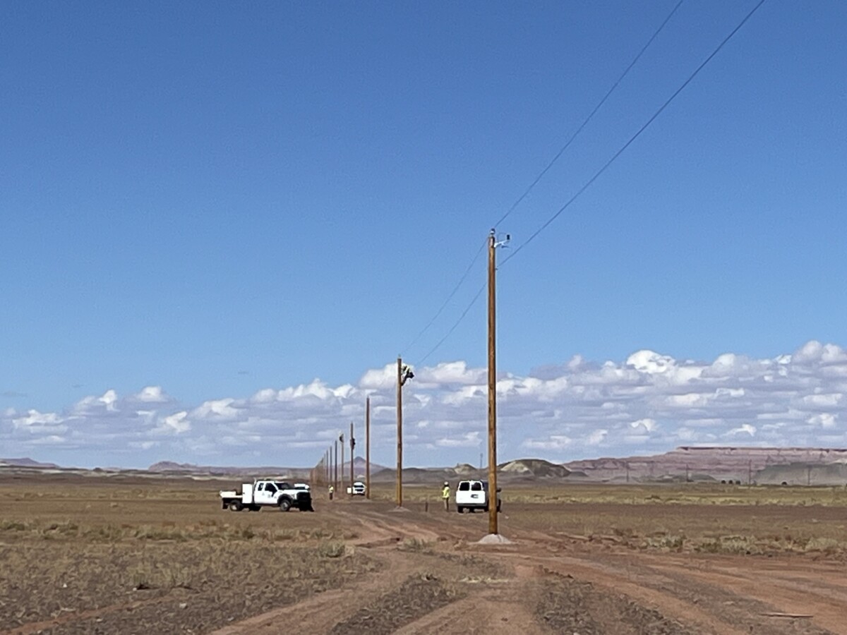 The work is not easy. Crews must set poles through rocky ground, string wire across vast desert landscapes, and travel long distances between homes. But for the families who wait years for service, the payoff is immediate and profound.