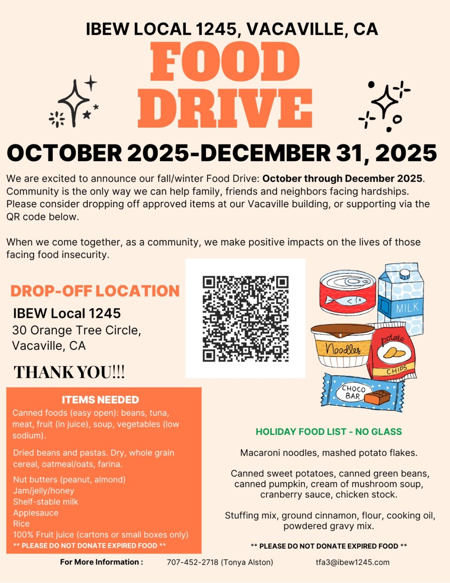 IBEW 1245 has officially launched its Fall/Winter Food Drive, running now through December 31, 2025.