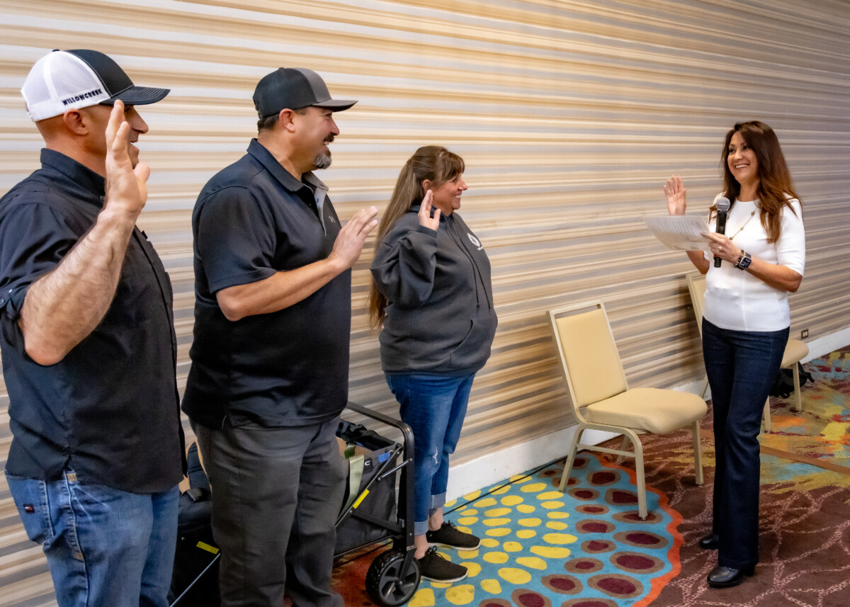 President Cecelia De La Torre swears in the Advisory Council Members, Jed Cruz, Roberto Arredondo and Sandi Busse.