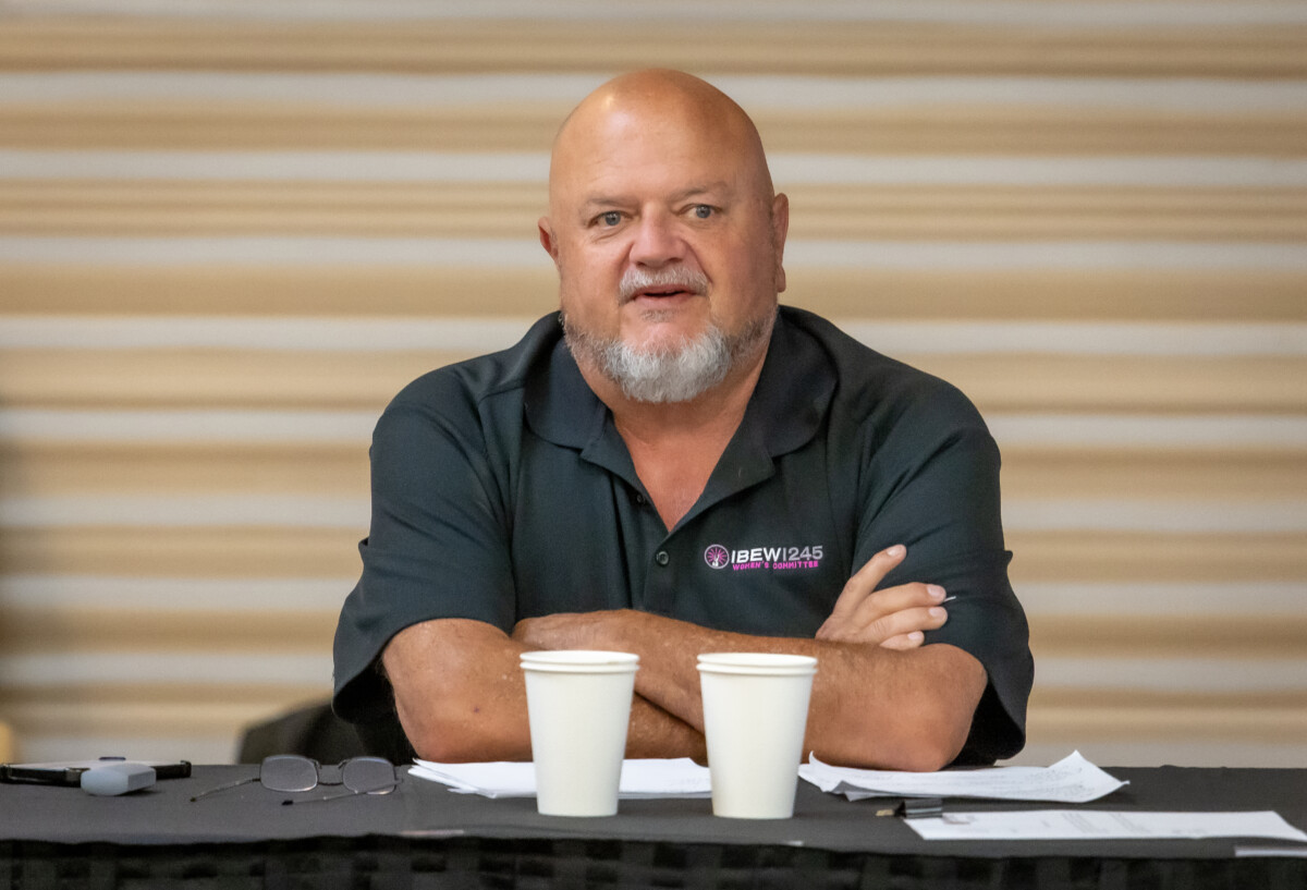 Business Manager Bob Dean speaking at the IBEW 1245 Advisory Council in Reno, Nevada on October 25, 2025.