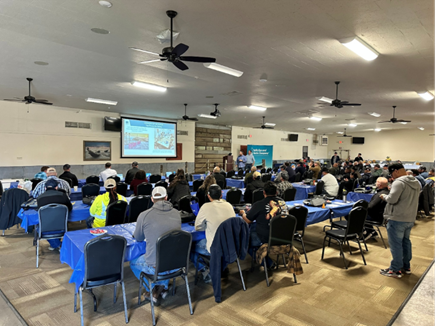 HTP introduced a new approach this year by meeting crews directly on job sites, prompting more open conversations about hazards, mental health, and real-world challenges. They delivered dozens of pitches — from apprentice classes in Livermore to yard visits in Oakland and Richmond, large unit meetings in Fresno and San Francisco, and a joint visit to Wheeler & Wells Rural Electric in Nevada,