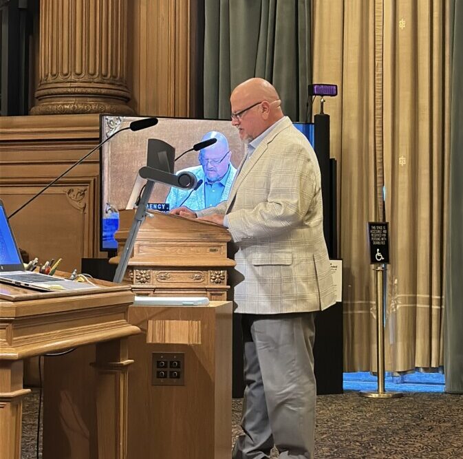 Speaking directly to city officials, IBEW 1245 Business Manager Bob Dean highlighted the extraordinary skill and coordination required of the workforce that responds when communities lose power.
